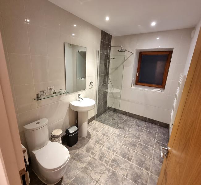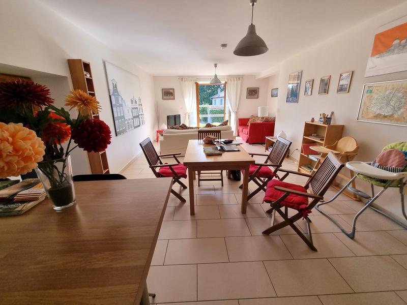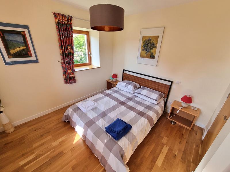 Cette grande maison aux volets bleus comprend à l’étage la maison du propriétaire et au rez-de-chaussée la location de vacances. Appartement de plain-pied : → Séjour-cuisine lumineux : évier, hotte aspirante, four électrique, four à micro-ondes, table de cuisson (4 feux gaz), réfrigérateur avec congélateur, lave-vaisselle, lave-linge, cafetière électrique, bouilloire électrique, grille-pain, vaisselle, ustensiles et batterie de cuisine, table haute et 4 tabourets assortis, → Espace salon avec TV à écran plat, canapés, table basse, WIFI (connexion gratuite et sécurisée), … → 2 chambres doubles : – 1 lit 2 personnes en 160×200 cm – 2 lits 1 personne en 90×200 cm Rangements dans chaque chambre. → Salle d’eau avec douche à l’italienne, lavabo et WC. Sèche-cheveux. Sèche-serviettes électrique. Le gîte est équipé d’un chauffage central par géothermie (plancher chauffant). Les extérieurs : → Jardinet avec mobilier de jardin. Barbecue. Balançoire avec toboggan. Activités de pleine nature : randonnées balisées à pied, à vélo / VTT / Gravel, pêche, base de loisirs et voile au Lac de Devesset, voie verte Via Fluvia, Commerces dans le village. Réservation 2 nuitées minimum Logement de plain-pied au rez-de-chaussée de la maison : Toutes les portes sont adaptées au passage d’un fauteuil roulant. En revanche, les seuils extérieurs ne sont pas adaptés aux personnes à mobilité réduite (PMR).